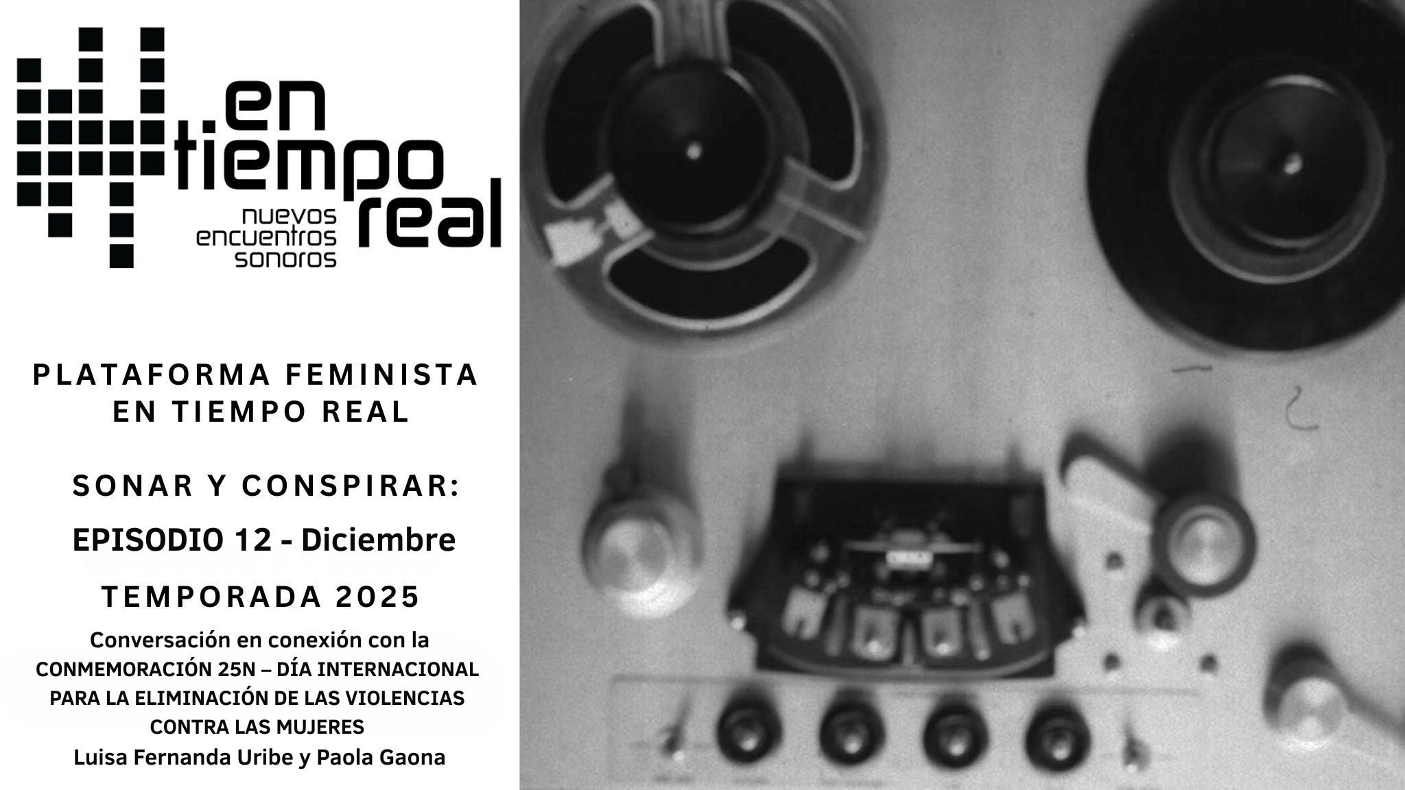 Este decimosegundo episodio con el que cerramos el 2025 es conducido por las colombianas Luisa Fernanda Uribe, de Bogotá, y Paola Gaona, de Popayán. Ellas conversan en torno a la fiesta como acción política, a la reivindicación de la rabia y a la alegría a través del encuentro colectivo y en conexión con el 25N (Día Internacional de la Eliminación de las Violencias contra las Mujeres).